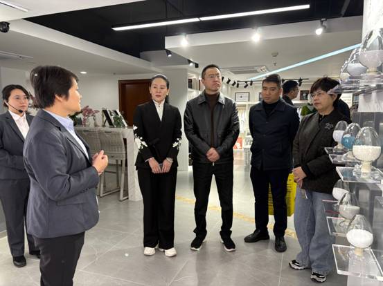 招商組一行參觀了紡織公司八樓形象展廳。領(lǐng)導(dǎo)們向來賓詳細(xì)介紹了公司在業(yè)務(wù)布局、產(chǎn)品研發(fā)、市場拓展等方面的發(fā)展情況及創(chuàng)新舉措,招商組對公司在產(chǎn)業(yè)轉(zhuǎn)型升級上取得的成就表示高度贊賞。